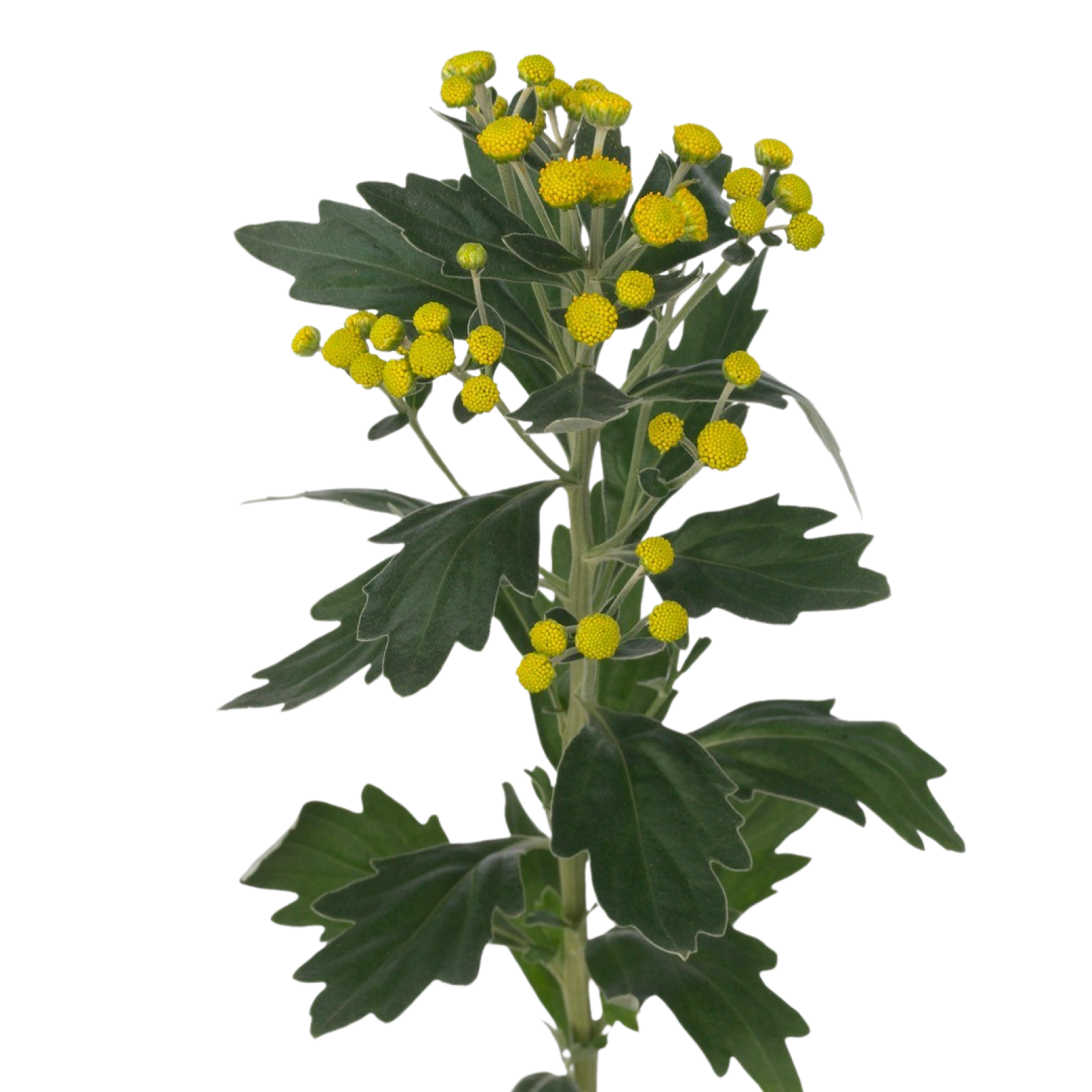 L'Ajania a des feuilles grises/vertes et des fleurs jaunes.
