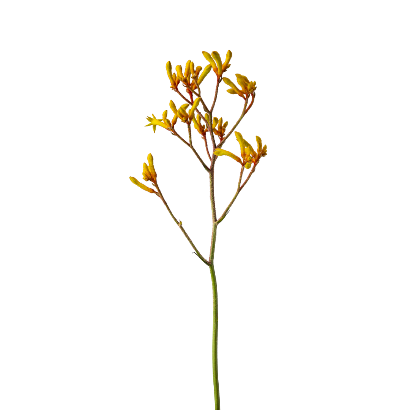 L'Anigozanthos ajoute une texture et une couleur magnifiques aux compositions florales. La fleur se compose d'une tige verticale avec des fleurs veloutées à l'extrémité.