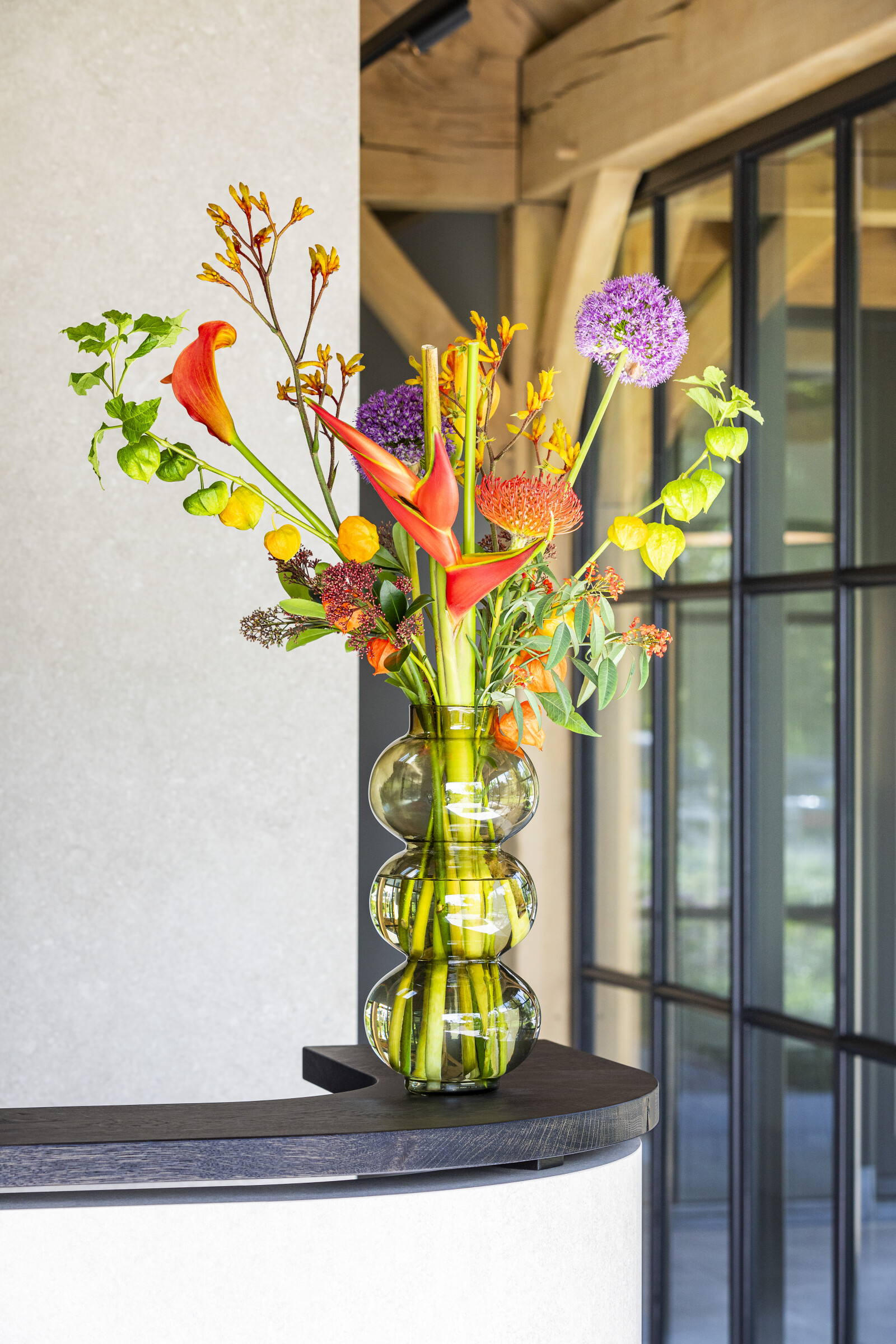L'Anigozanthos s'intègre bien dans une variété d'arrangements floraux, qu'il s'agisse d'arrangements modernes et épurés ou de conceptions plus traditionnelles et luxuriantes. Il peut être utilisé comme un véritable accroche-regard.