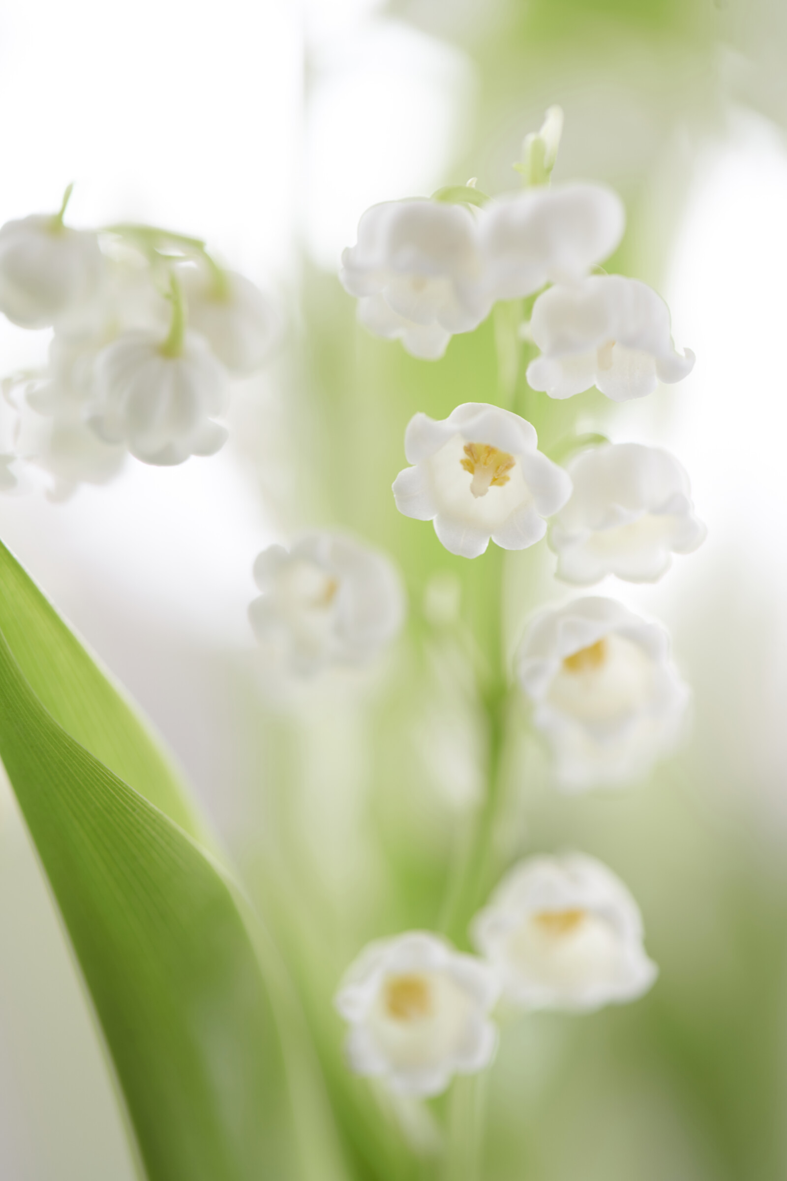 La Convallaria se compose de petites fleurs blanches en forme de clochettes qui pendent d'une tige mince.