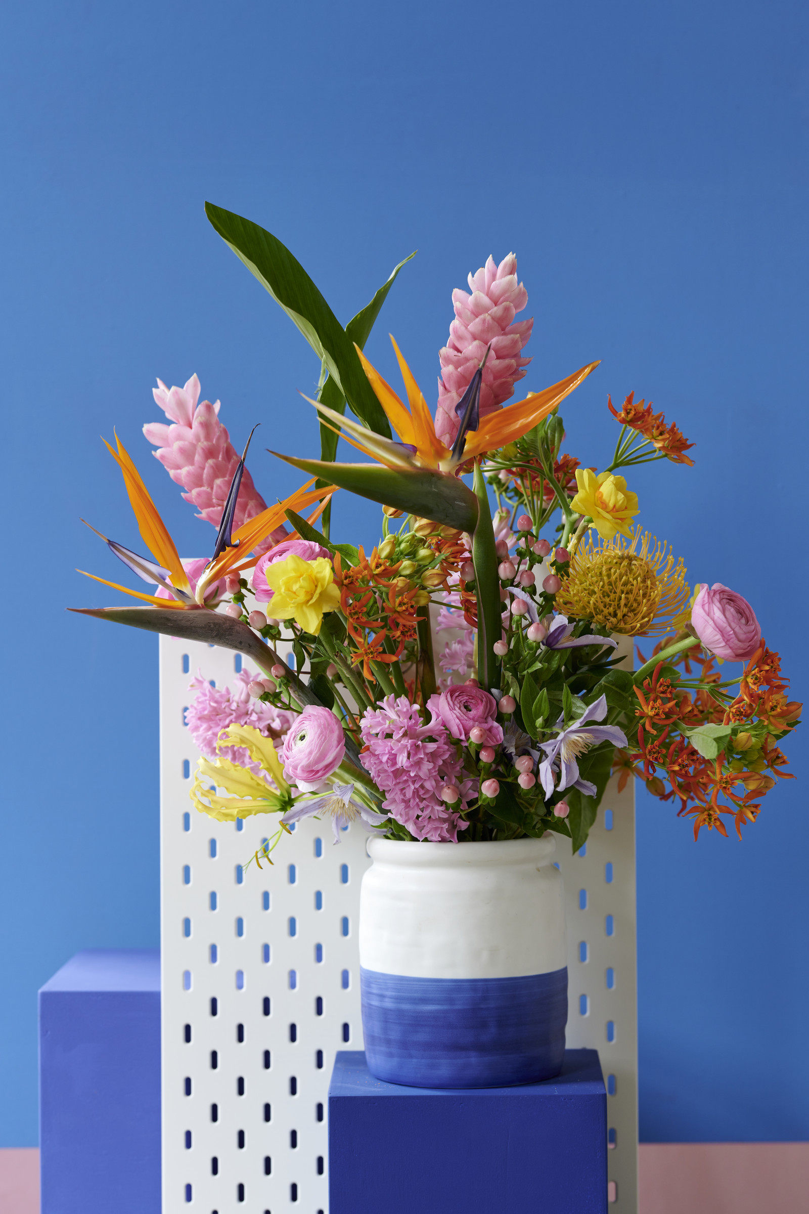 Le Strelitzia a un aspect saisissant et exotique. La fleur se compose de pétales aux couleurs vives qui ressemblent aux ailes d'un oiseau exotique !